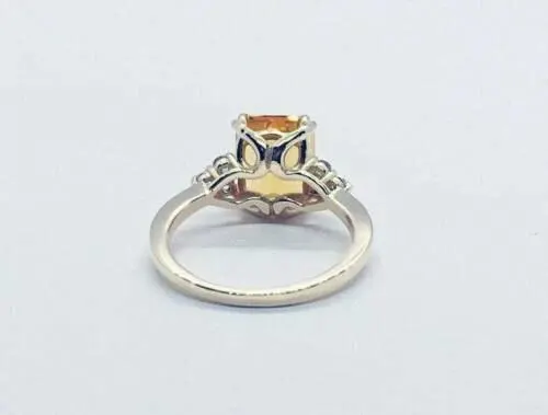 Main Stone: Emerald cut yellow cubic zirconia (simulated citrine)