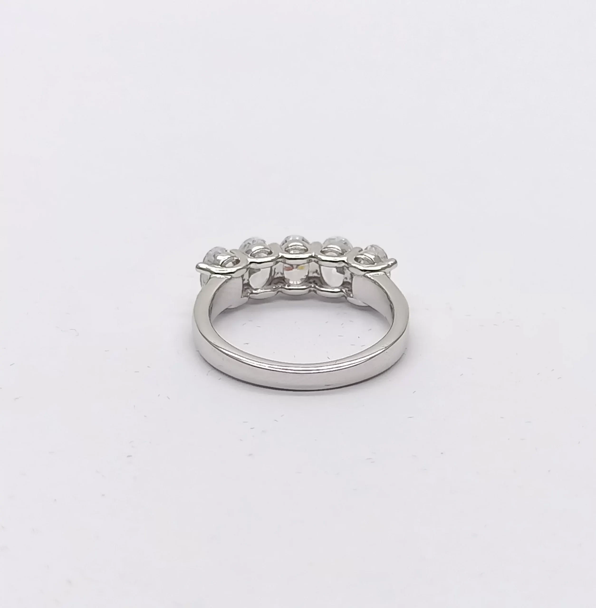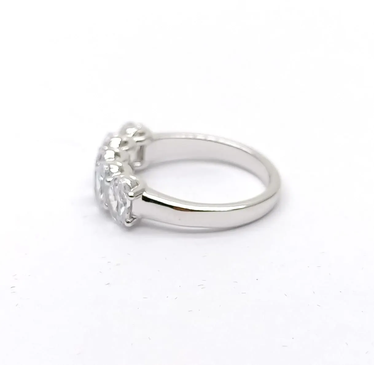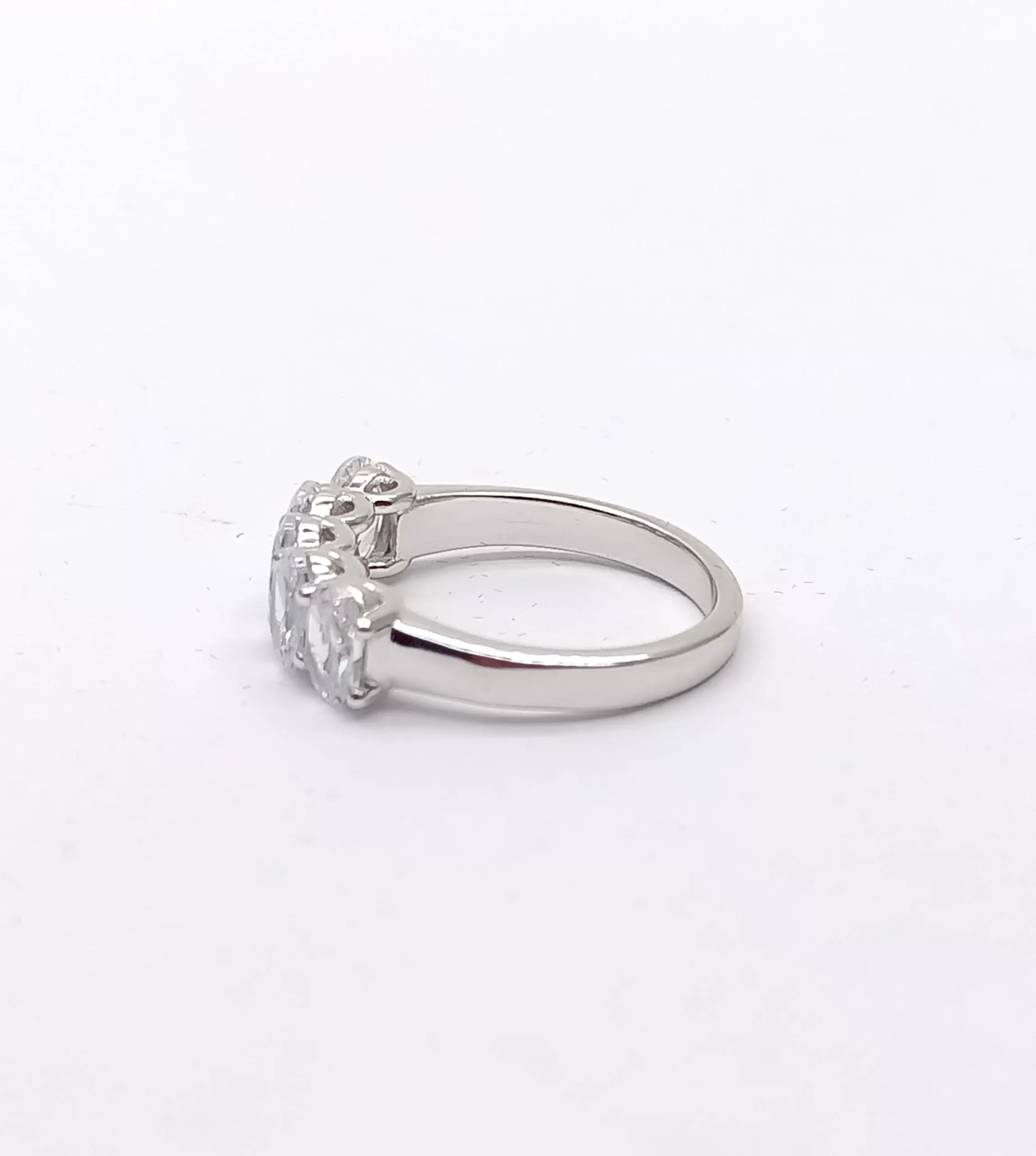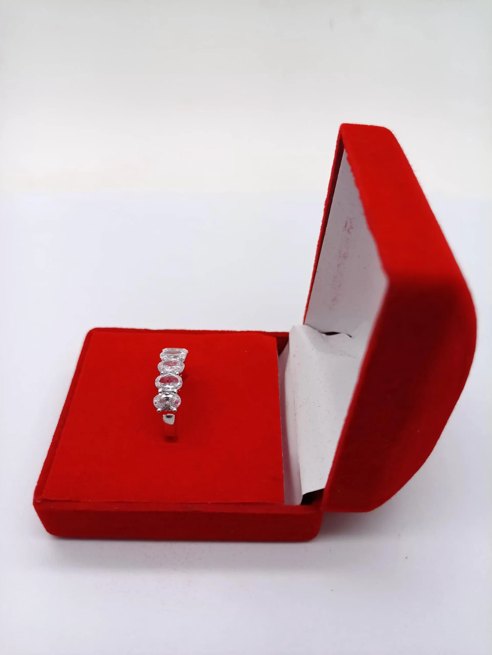 Make a timeless statement with this Oval Cut Five-Diamond Sterling Silver Engagement Ring, beautifully 14K white gold-plated for a luxurious finish. Featuring five dazzling oval-cut stones, this ring symbolizes everlasting love and elegance. Crafted from high-quality sterling silver, this piece offers brilliance, durability, and comfort, making it perfect for both daily wear and special occasions.