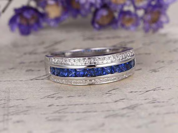 Princess Cut Blue Sapphire Half Eternity Wedding