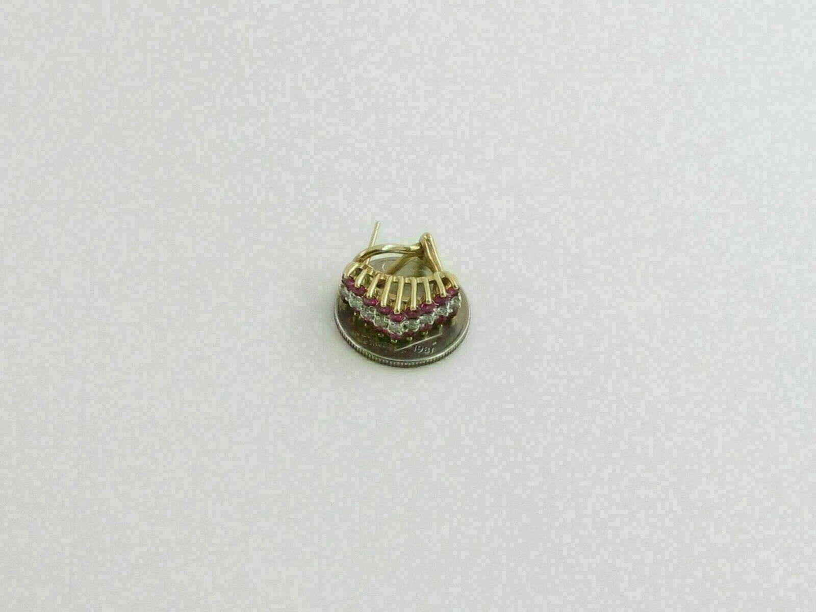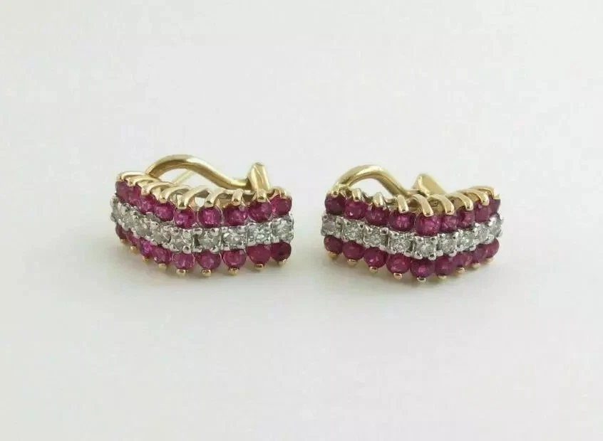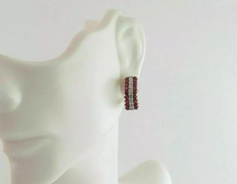 Ruby and Diamond CZ Half Hoop Earrings – 14K Gold Plated Sterling Silver Elegant Vintage Style Earrings for Women