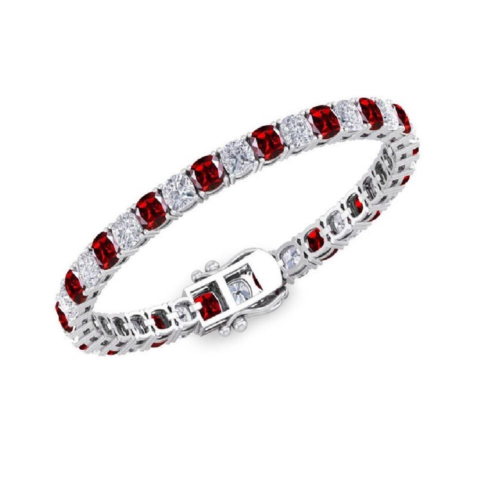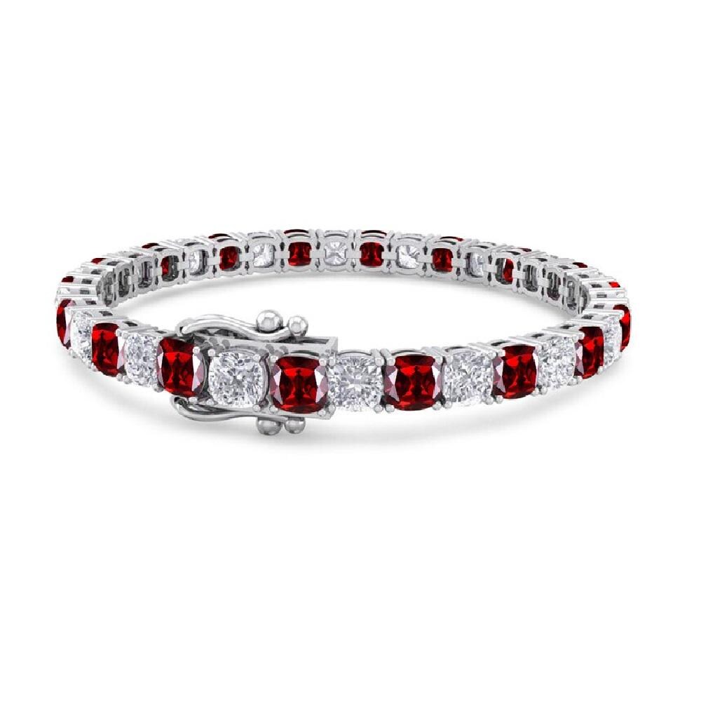 Add timeless elegance to your jewelry collection with this stunning tennis bracelet featuring a flawless arrangement of alternating red and white stones. Set in a sleek white metal, each gem is precisely placed to maximize brilliance and contrast, making it the perfect accessory for both everyday elegance and special occasions. With its secure clasp and classic design, this bracelet exudes both luxury and refinement.